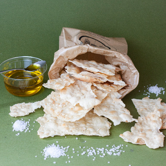 La croccantina, è come le ciliegie….più ne hai e più ne mangi! Appetitosa e croccante, ogni morso è un viaggio di piacere! Nata da un’intuizione di Nicola, è frutto di una lenta lievitazione che permette di stendere l’impasto fino a renderlo una foglia sottile che viene poi condita con sale e olio e cotta in forno.